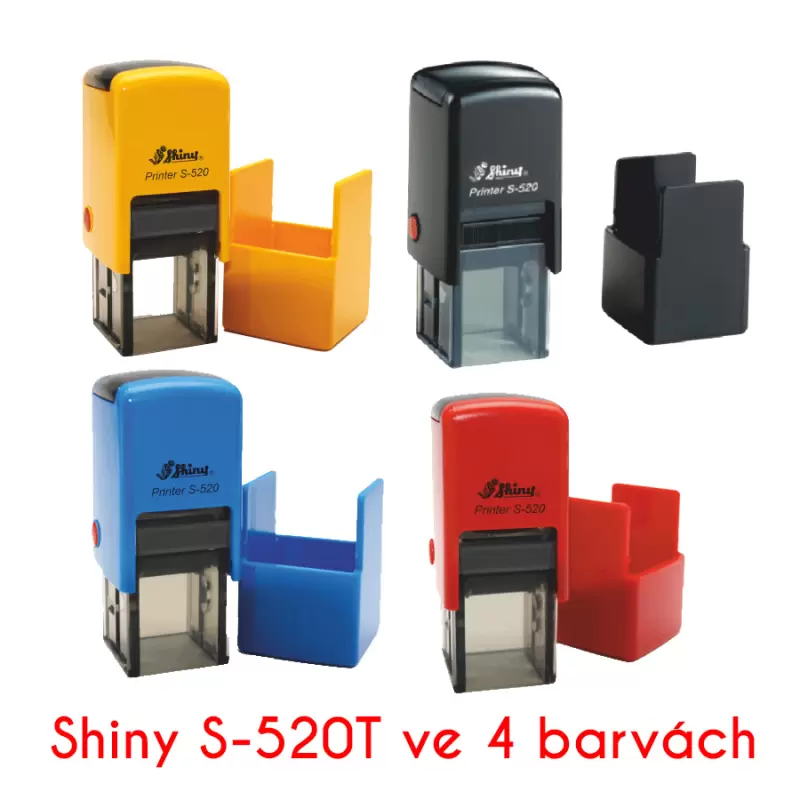 Kvalitní samonamáčecí textové razítko Shiny S-520T řady Printer Line s maximální velikostí otisku 20x20mm.