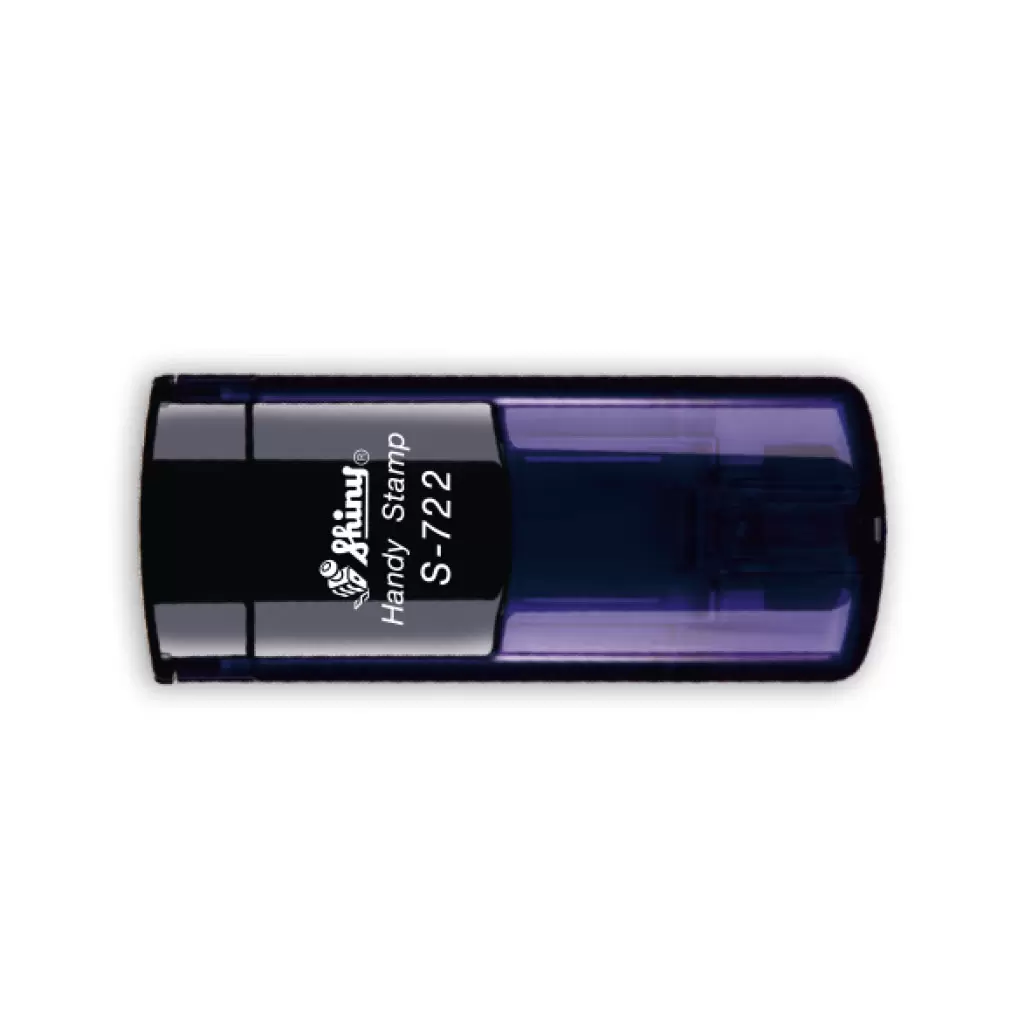 Kapesní textové samonamáčecí razítko S-722 Handy Stamp s maximální velikostí otisku 38x14mm. 1/4 velikosti běžného razítka, vhodné pro přenos v kapse, kabelce apod.