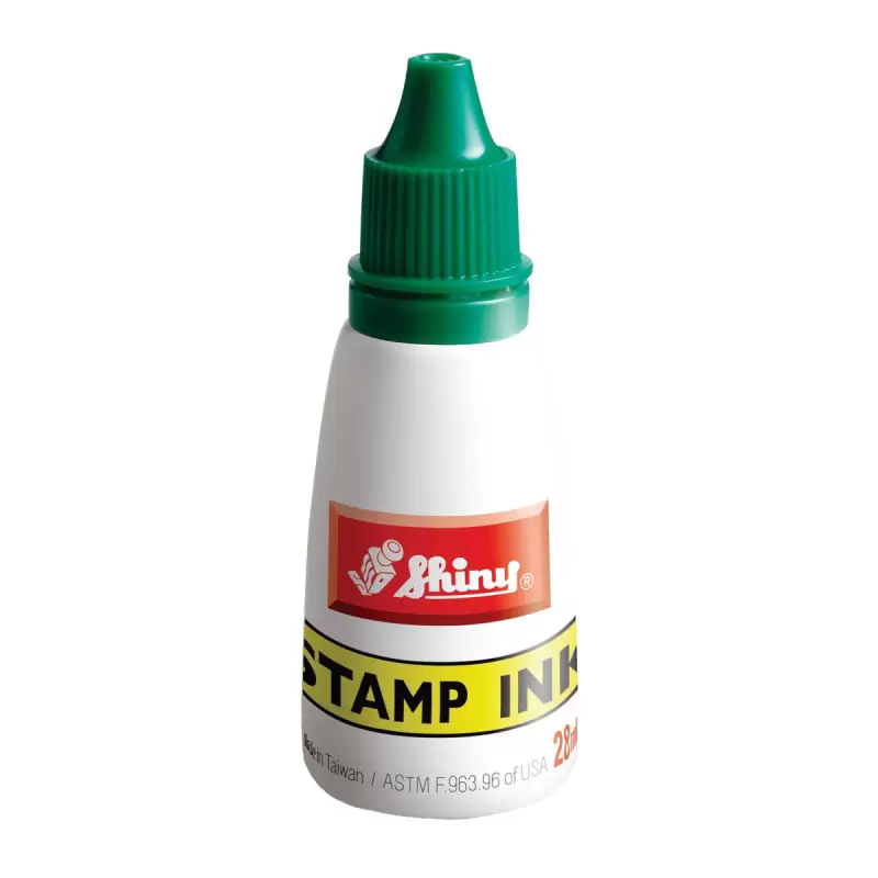 Klasická razítková barva pro doplnění razítkových polštářků a podušek, balení 28ml. Barva zelená.
